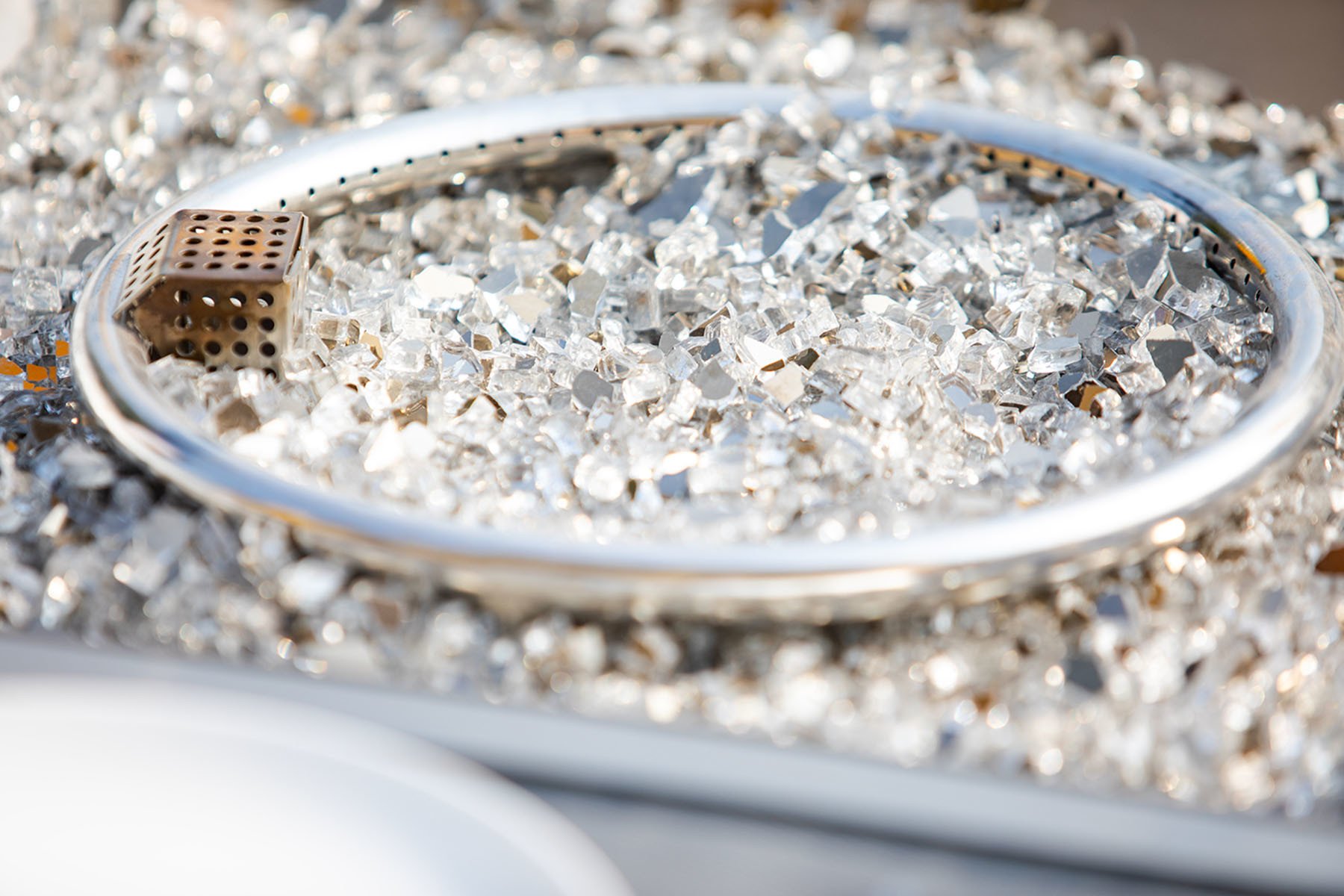 The dining table has a gas fire pit with multiple heat settings so you can prolong your outdoor relaxation long into the night.